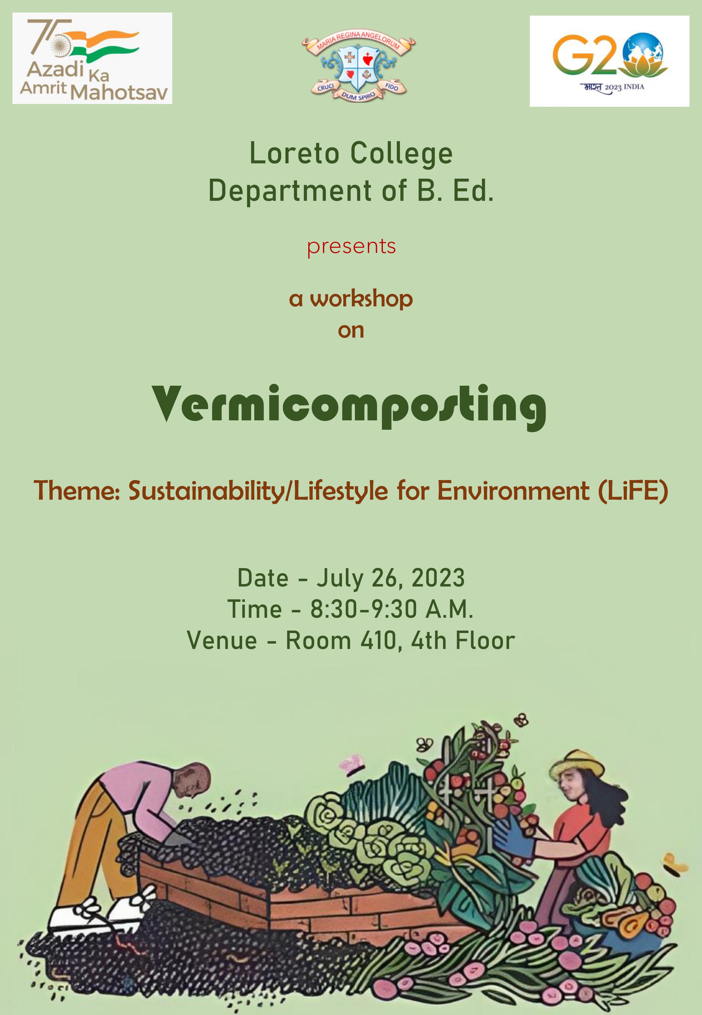 On July 26, 2023, the first-year students of the Department of B.Ed., Loreto College, Kolkata, attended an enlightening workshop on ‘Vermicomposting’ based on the theme of Sustainability and Lifestyle for Environment (LiFE). The workshop aimed to raise awareness about sustainable practices and educate participants on incorporating these practices into their daily lives. The session was conducted by Ms Lata Bhatia, the founder of Green Legion, who has been actively working to promote sustainability since 2016.