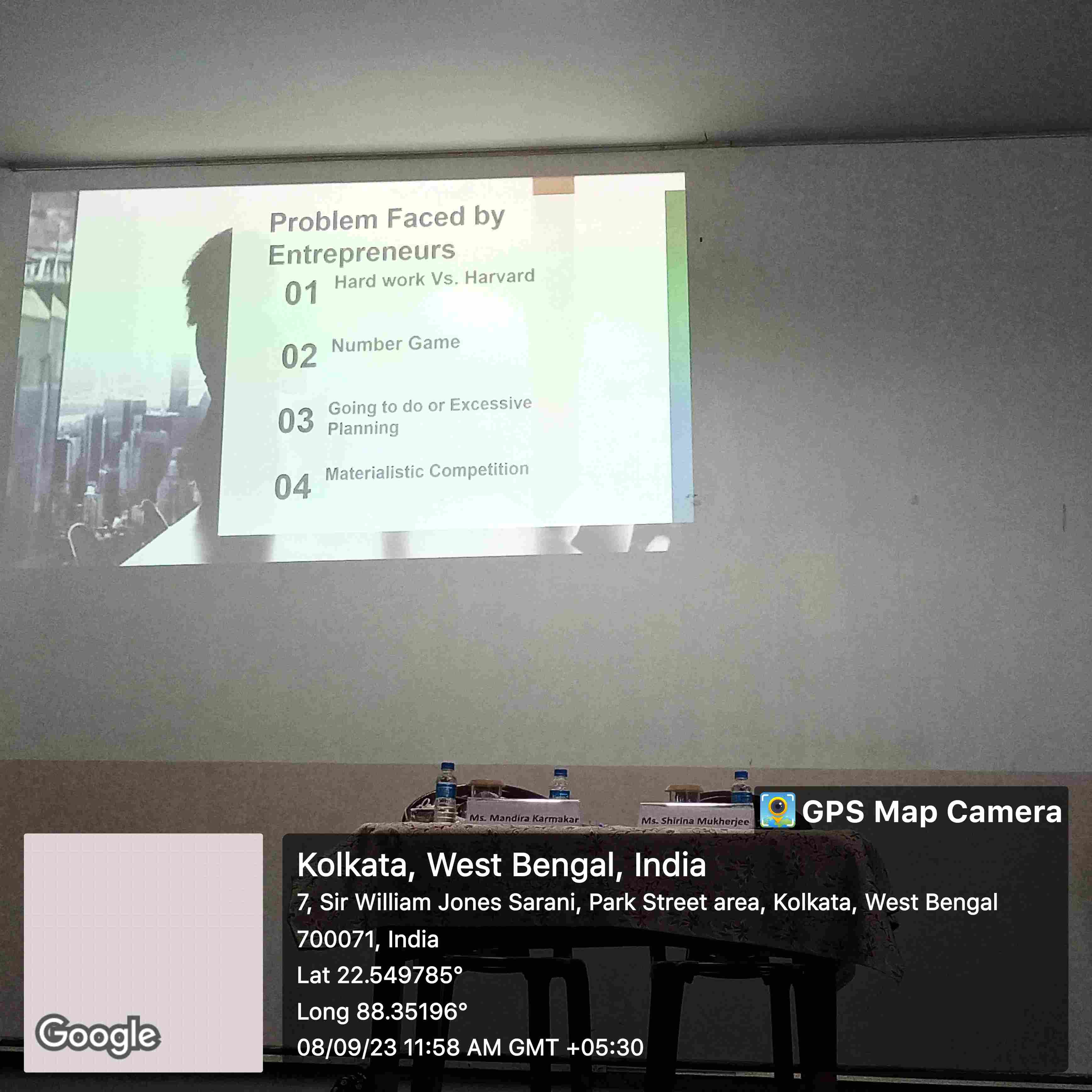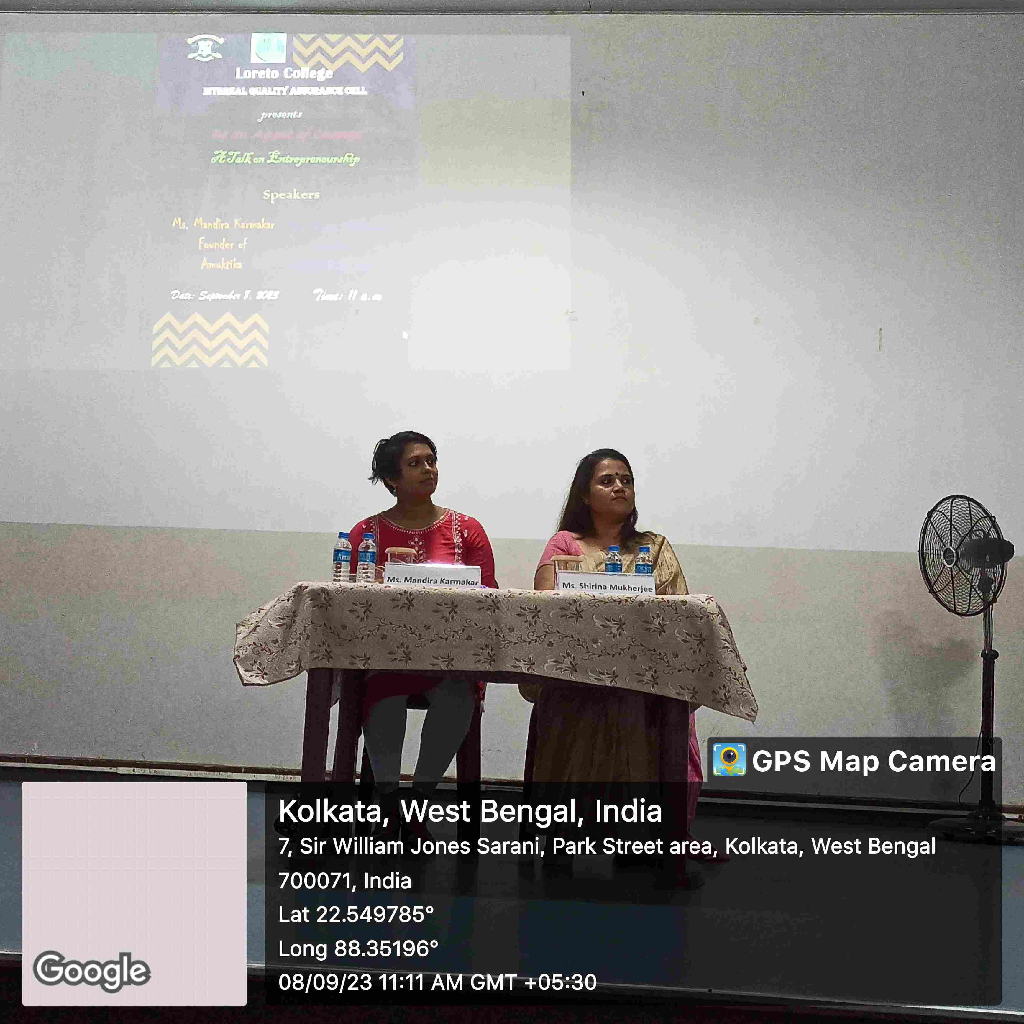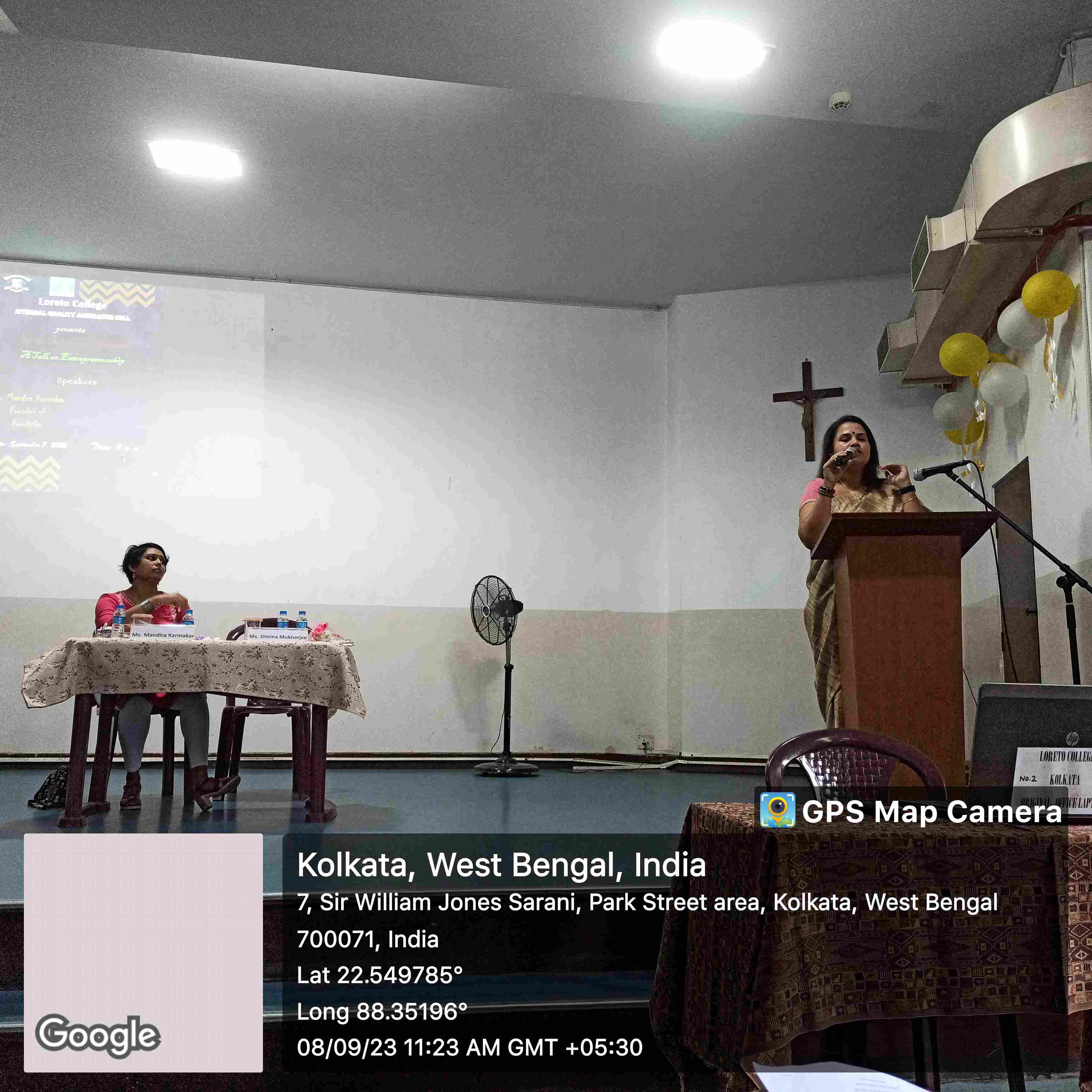 On September 8, 2023, the Internal Quality Assurance Cell of the college had organized a special session on Entrepreneurship titled "Be an Agent of Change", a much needed one that could initiate the students to the idea of starts-up and how to sustain it. The talks were addressed to the Semester 1 students of the college. The speakers in the programme were Mrs. Mandira Karmakar, Founder of Amuktika and Mrs. Shirina Mukherjee, Founder of Vanilla Bean Bakery.