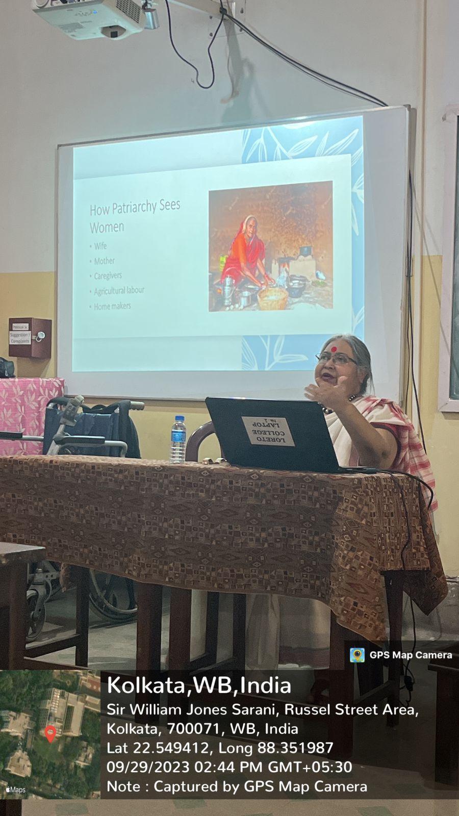 On September 29, 2023, the Department of Human Rights organized a special lecture on Gender and Health for the second-year students of Loreto College, Kolkata. It was delivered by Ms. Sreela Dasgupta of TCS, who has worked for over two decades in the not-for-profit sector, focusing on issues related to gender equity, women’s reproductive health and rights, public health service delivery, queer rights, and violence against women.