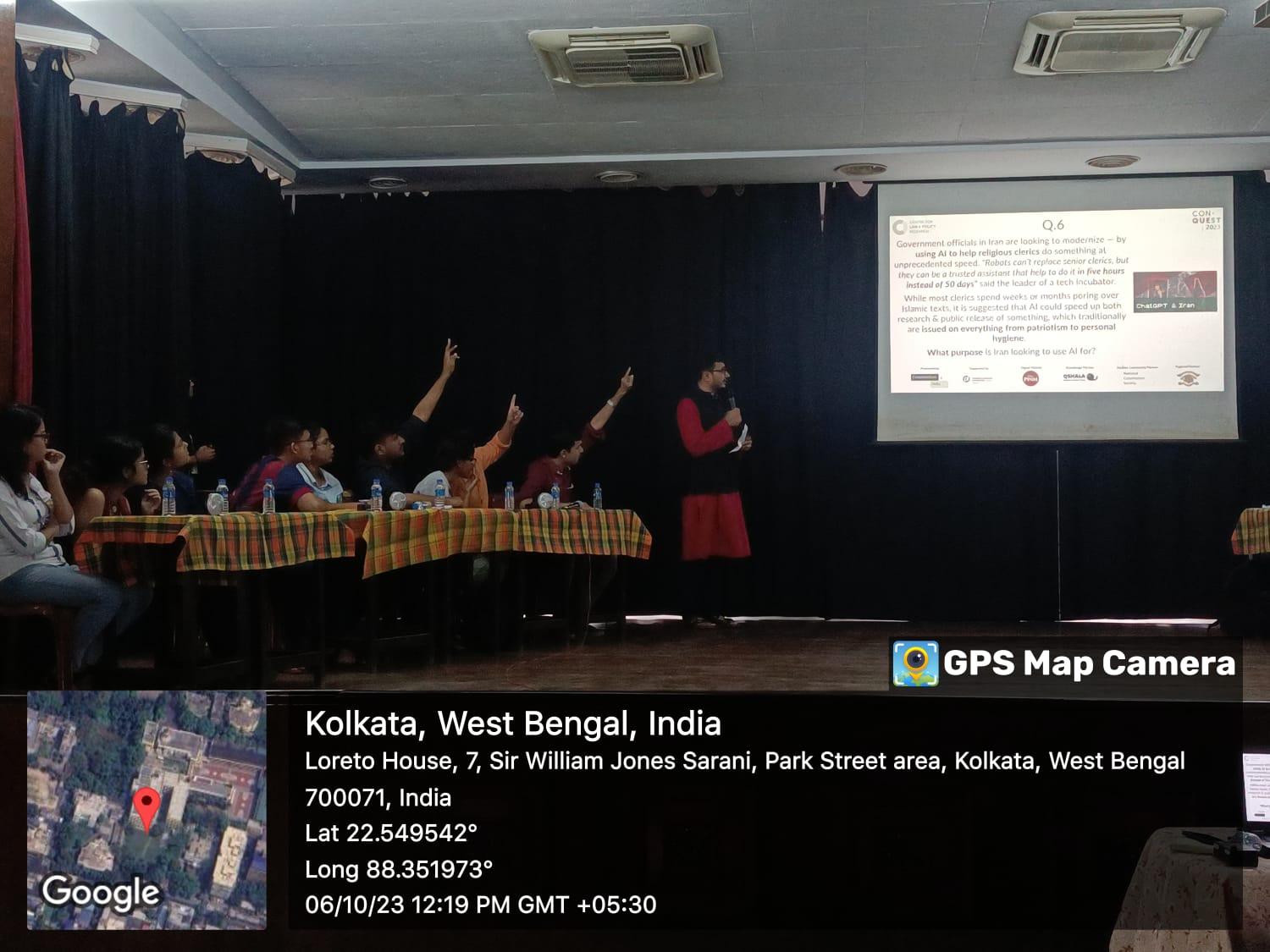 On October 6, 2023, Loreto College, Kolkata hosted the Eastern Regional Finals of ConQuest, India’s premier national quiz on the Indian Constitution, History, and Politics organized by the Centre for Law and Policy Research, Bangalore. For the 7th edition this year, the theme was Artificial Intelligence. The event involved the participation of over 30 teams representing various colleges from the eastern region of India.