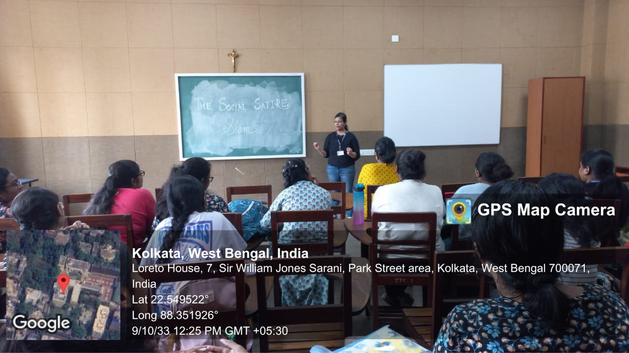 On October 9th, 2023, the Media Society of Loreto College organized a standup comedy event 'The Social Satire Slam' in the Media Lab. The event featured a diverse lineup of students from various departments, providing a balanced mix of various genres of humour. The performers brought a wide array of comedy styles, ensuring there was something for every taste. The event saw engaging performances by a third year student Shinjini Sarkar and Shruti Prasad, Vaijayanti Mukherjee and Akshiti Prasad of 2nd year. The event was a testament to the college’s commitment to provide a holistic educational experience that extends beyond classrooms.