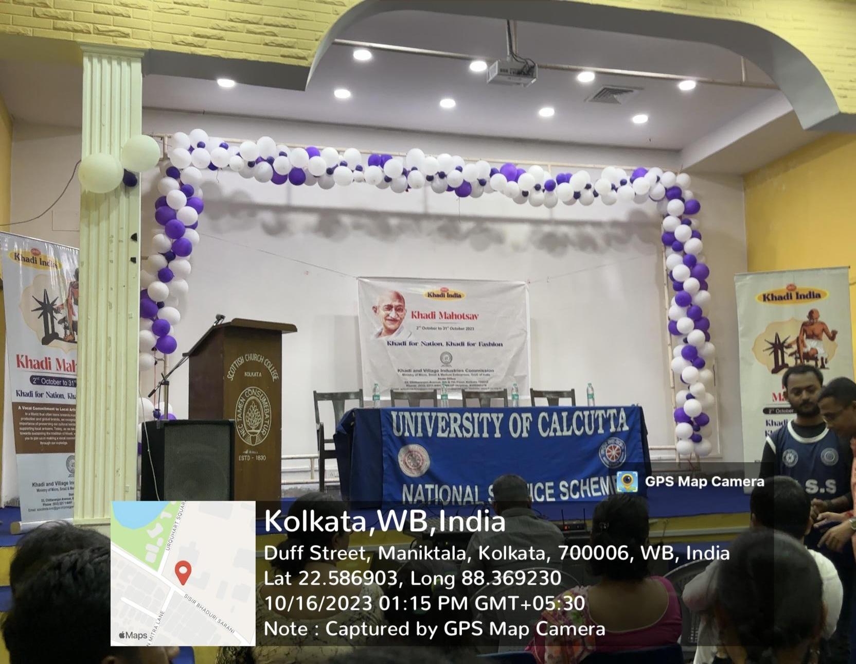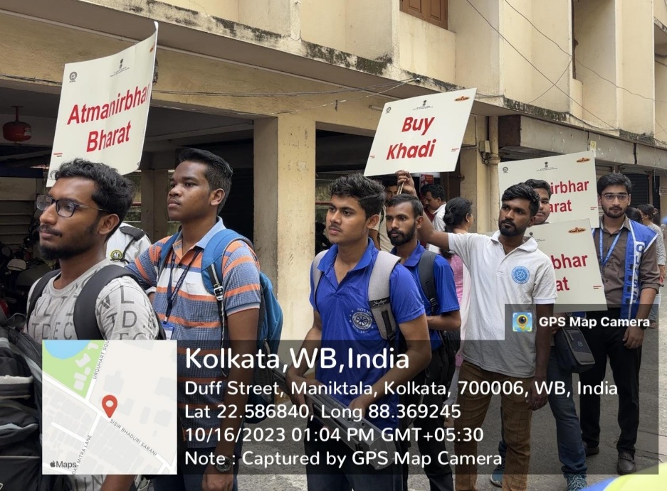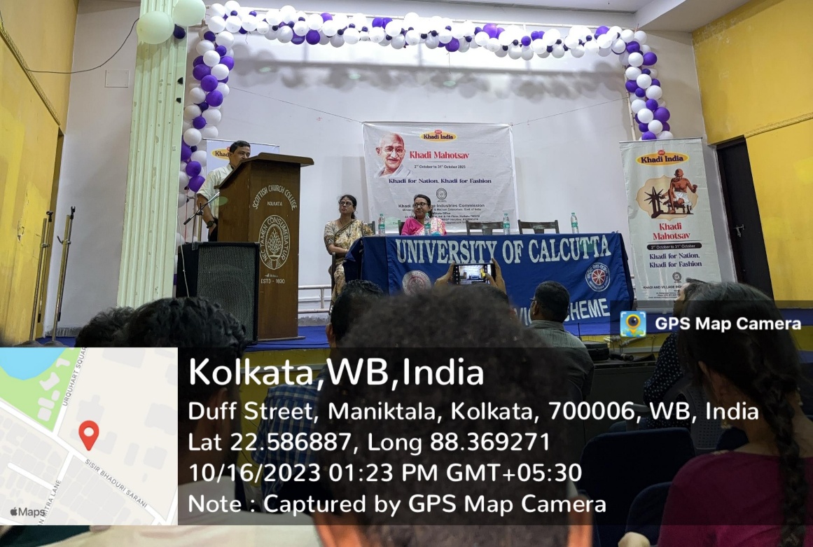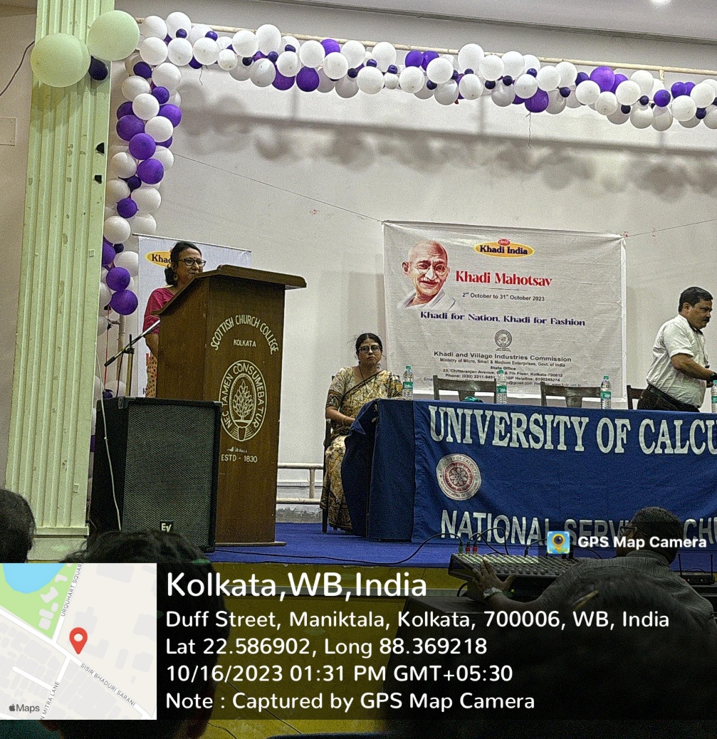 On October 16, 2023, three volunteers from the National Service Scheme (NSS) Society of Loreto College, Kolkata participated in the Khadi Mahotsav Rally organized by the National Service Scheme Unit of Calcutta University. The rally began at the Calcutta University campus and ended at Scottish Church College. Approximately 50 volunteers from NSS Units of various colleges and universities in the city participated in this rally. The keynote speaker Mr. Gautam Majumder, representative of the Khadi Movement, began the seminar by talking about the initiative of making Khadi Mahotsav a pan-India event. The NSS Coordinators of Calcutta University, Professor Debarati Das and Professor Shritama Das, also spoke to the volunteers about the importance of Khadi. The speakers elaborated on the Prime Minister’s campaign to make India Atmanirbhar, to follow the policy of “Vocal for Local” and “Khadi for Nation, Khadi for Fashion,” and to promote start-up initiatives involving Khadi and Gram Udyog Bhavan. The volunteers gained valuable insight into the different aspects of Khadi production and the ways in which the Khadi industry could boost the employability of local artisans.