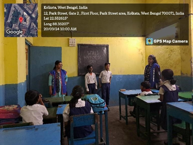 A group of 21 volunteers from the National Service Scheme (NSS) Society and the Social Service Society of Loreto College, Kolkata visited Bal Shiksha Sadan School on March 20, 2024 on the occasion of World Happiness Day. The volunteers conducted activities such as the recitation of poems, singing, and dancing. Refreshments were also distributed among the students. The volunteers were grateful to have the opportunity to spread happiness and cheer among the children of the school. The smiling faces of the children motivated them to continue working for those less privileged.