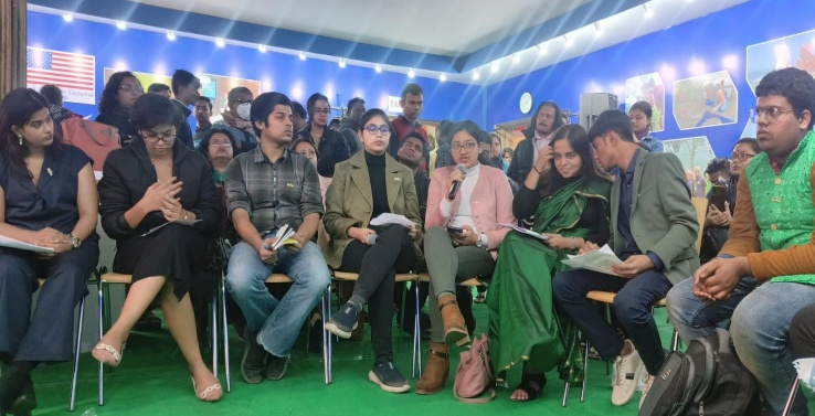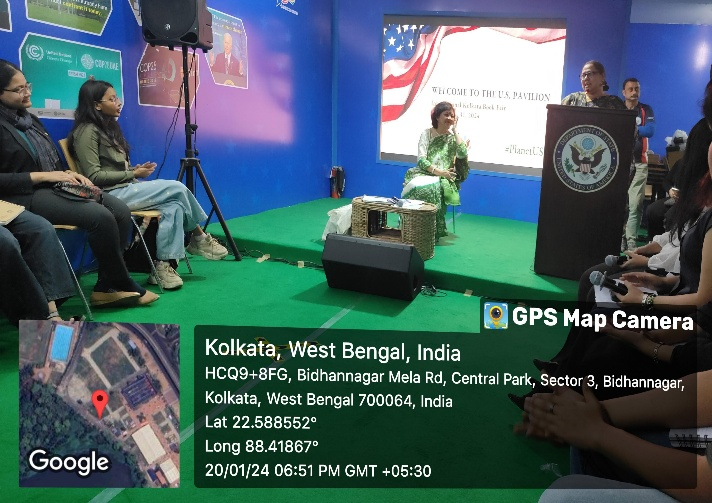 Recognising the looming threat posed by climate change to the Earth’s common future and the varied impact it has on the different genders, the United States Consulate General, Kolkata organised a panel discussion at the U.S. Pavilion of the International Kolkata Book Fair on January 20, 2024. Young climate enthusiasts from four institutions—Loreto College, Lady Brabourne College, Jadavpur University, and Presidency University—participated in this discussion. The opening remarks were delivered by Ms. Elizabeth Lee, Director of the American Center, Kolkata and the Public Affairs Officer (PAO), who emphasised the urgency of ground-level actions to combat climate change. In the next segment, the participants were divided into groups of two and given the opportunity to express their views on a variety of subjects, ranging from ecofeminism and climate justice, climate-induced migration and cultural threat from climate change, health impacts (specially on pregnant women), and effects on indigenous communities, to lifestyle changes, various action plans of the U.S.A. and India, and the role of G20 and the COP28 in Gender Inclusive Climate Action. The session was chaired by Dr. Indrila Guha, Principal of Basanti Devi College and an eminent researcher known for her extensive work on ecology and climate. All the panellists focused on various aspects of core climate issues and diligently underlined the need for significant steps to be taken at the grassroots levels to address the threat of climate change. The session concluded with the idea that the current generation has borrowed much from future generations in the name of development, and that now is the time to return what has been borrowed. The end note instilled a ray of optimism and promised a better tomorrow for all.