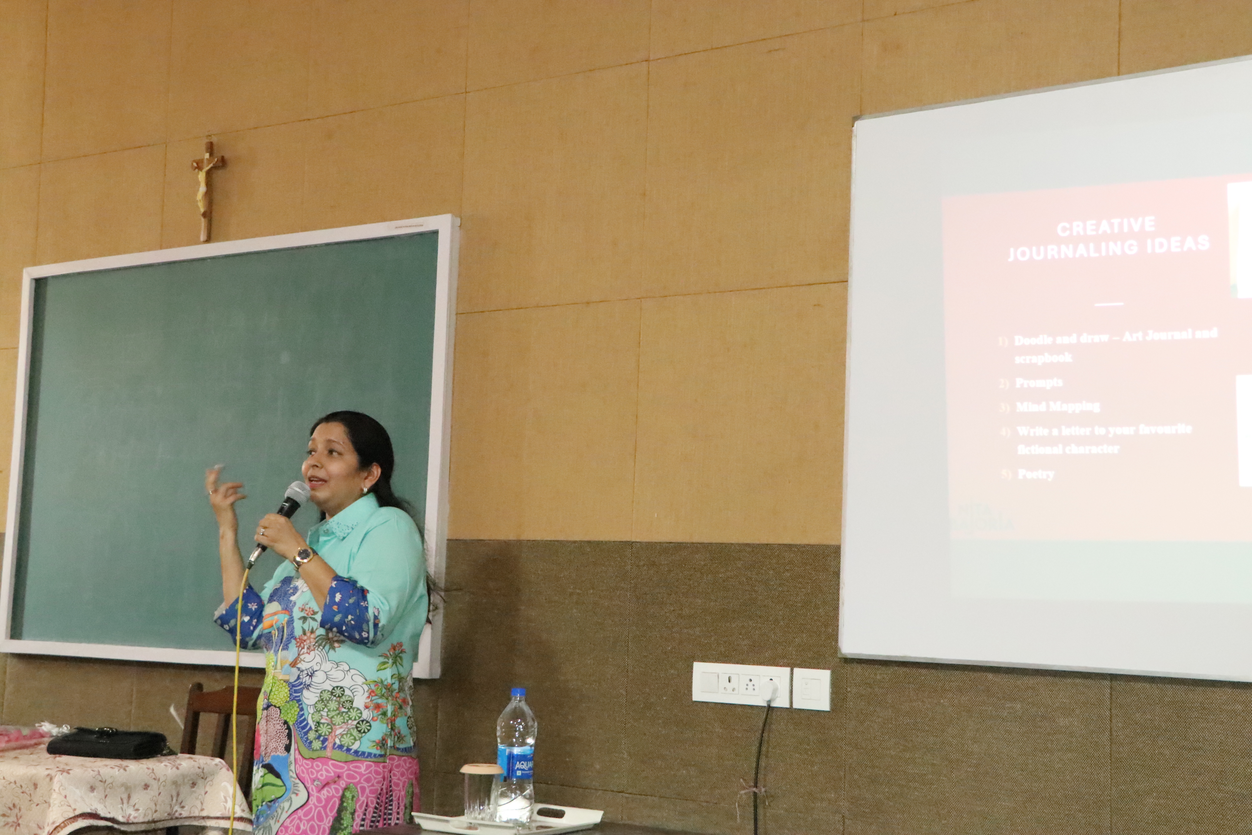 Mrs. Bajoria shared her remarkable journey from a corporate director to a celebrated author, revealing how a simple birthday gift sparked her passion for writing. Her insights into the worlds of science fiction and graphic novels and her upcoming historical text on Kolkata provided a rich backdrop to her discussion on the power of writing. Throughout her presentation, Mrs. Bajoria highlighted the profound impact of writing on personal development and mental wellness. Drawing from her own experiences, she highlighted how journaling serves as a cathartic outlet for processing emotions, quieting the mind, and fostering creativity. By encouraging participants to engage in various forms of journaling, from writing to doodling, she underscored the therapeutic benefits of self-expression and introspection. Her discussion also touched upon the historical importance of journaling, citing renowned figures such as Franz Kafka and Anne Frank, whose diaries have provided invaluable insights into their lives and times. Mrs. Bajoria emphasised the individuality and personal nature of journaling, urging attendees to preserve their writings as a legacy for future generations.