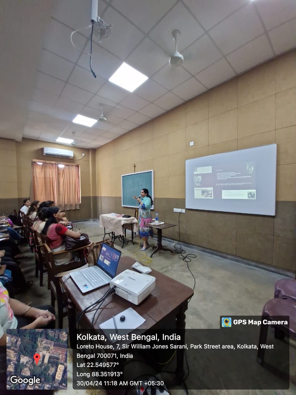 The Department of Education at Loreto College, Kolkata, in collaboration with the Internal Quality Assurance Cell (IQAC), organised a thought-provoking session featuring the distinguished author and former Director of the Kutchina Group, Mrs. Nita Bajoria, on April 30, 2024. The event centred around the theme of “The Art of Creative Journaling,” exploring its significance as a tool for self-expression, personal growth, and emotional well-being.