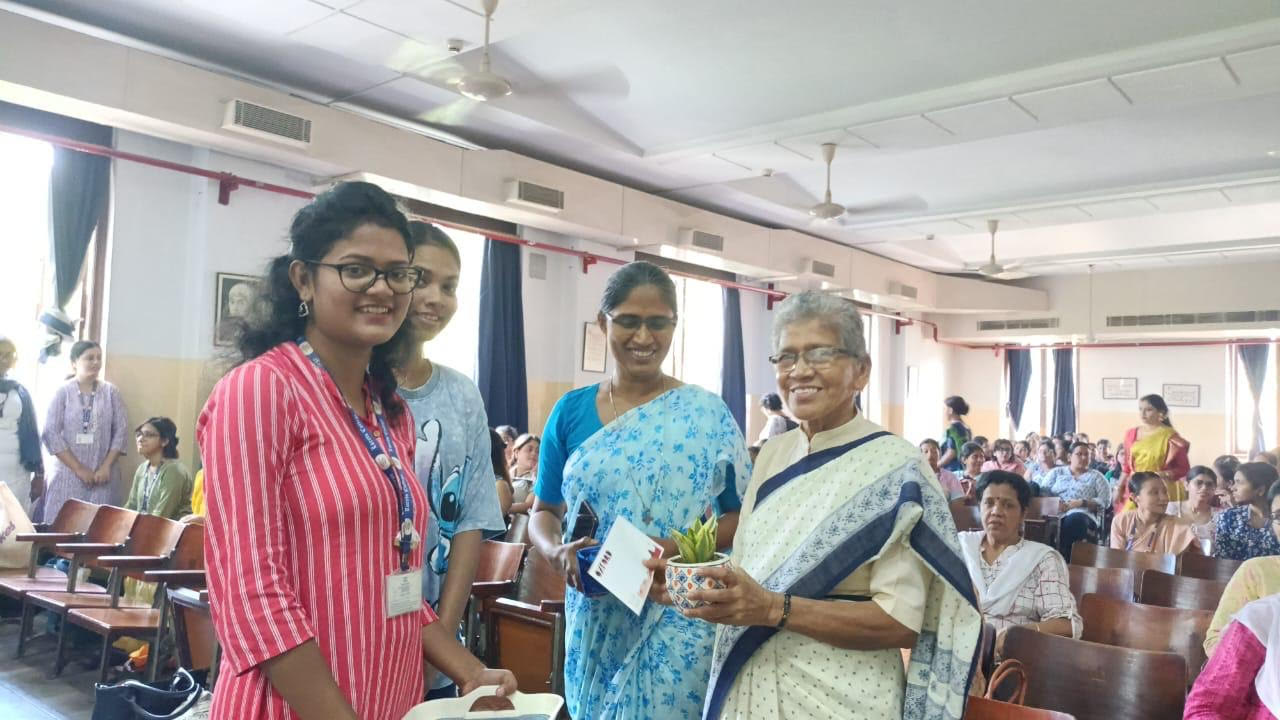 On May 14, 2024, the members of the All India Catholic University Federation (AICUF) Society of Loreto College, Kolkata organised a special farewell programme to honour their beloved staff advisor, Sr. Antoinette Rodrigues. The Acting Teacher-in-Charge Sr. Dr. A. Nirmala, faculty members, and students of the college gathered to bid her adieu.