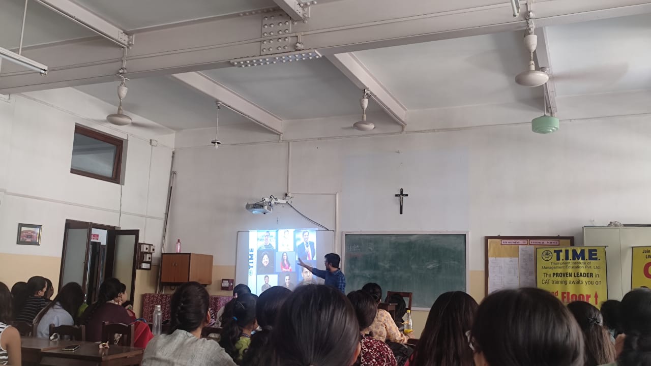 On March 27, 2024, T.I.M.E. conducted a seminar for the students of the Department of Political Science at Loreto College, Kolkata. The primary objective of the seminar was to inform students about the various programmes offered by T.I.M.E. for common entrance tests such as CAT, XAT, etc. Students were familiarised with details about batches, course content, success rates, and preparation strategies for competitive exams. Following the talk, an interactive session was conducted to engage the students and address their queries and concerns. The students are expected to appear for an online scholarship test on a fixed date after the seminar. As part of their campaign, T.I.M.E. also provided students with copies of their Journal on General Knowledge. By providing insights into preparation strategies and scholarship opportunities, the seminar empowered students to make informed decisions about their academic and professional pursuits.