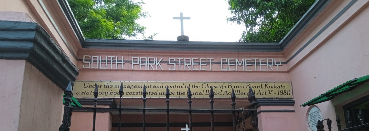 The trip began at Loreto College, the erstwhile garden house of Henry Vansittart, formerly the Governor of Bengal, and Sir Elijah Impey, the first Chief Justice of the Supreme Court. Dr. Basu provided a rich historical overview of Park Street, previously known as ‘Badamtala’ and also as ‘Old Burial Road’ due to the presence of three graveyards in the vicinity. During the short walk to the cemetery, Dr. Basu pointed out some of the significant monuments of Park Street that reflect its oft-neglected colonial legacy.