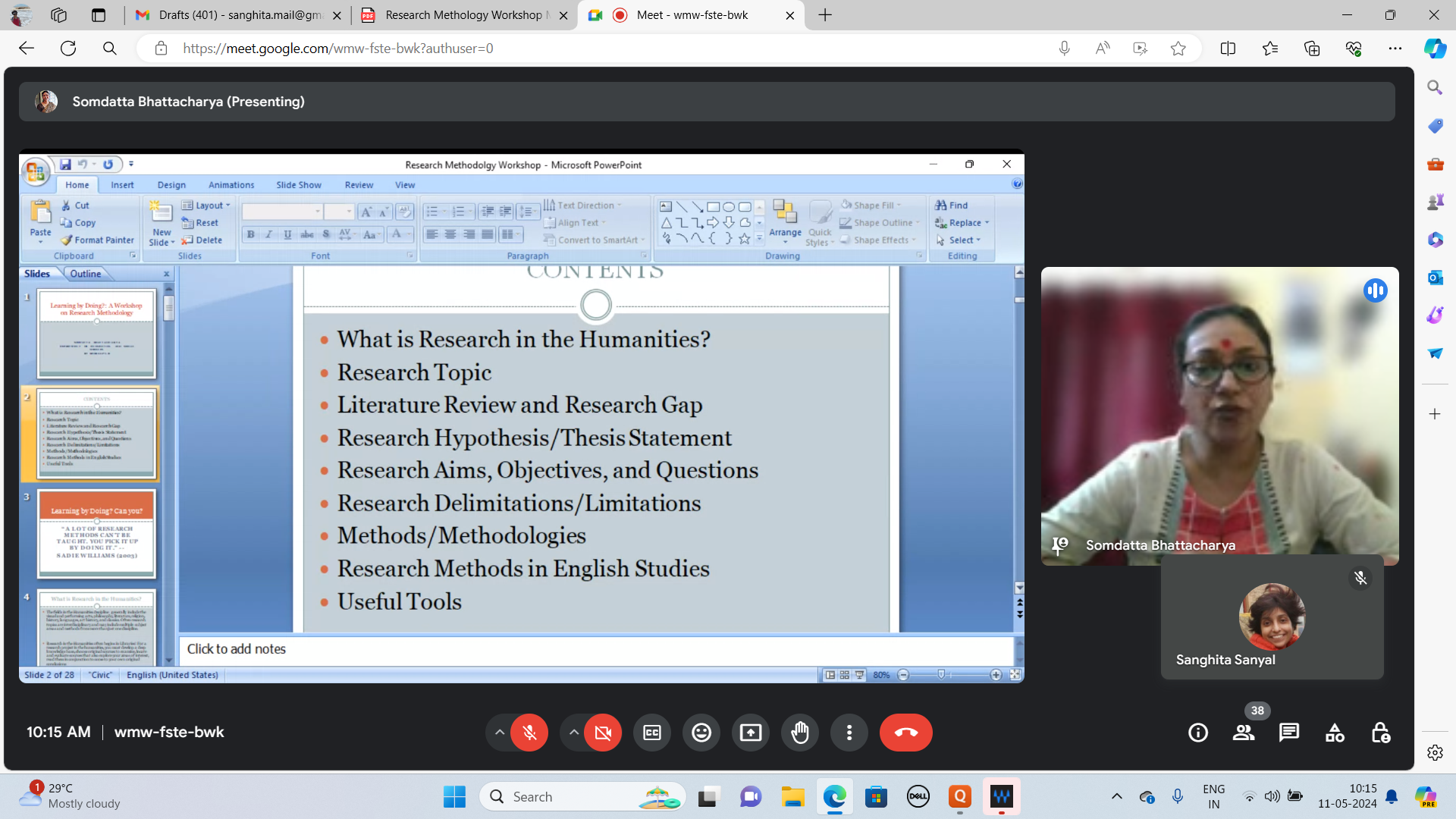 On May 11, 2024, a research methodology workshop for the post-graduate students of English was organised by the Department of English in collaboration with the Internal Quality Assurance Cell (IQAC) of Loreto College, Kolkata. The workshop was conducted by Dr. Somdatta Bhattacharya, Assistant Professor, Department of Humanities and Social Sciences, IIT Kharagpur. It aimed to impart basic and advanced insights into the most common forms of research projects taken up by students of Literature. Dr. Bhattacharya discussed various ways to frame research arguments and premises and theorise the available data. She also shared a number of useful and interesting techniques of collecting and storing data for reference. The workshop concluded with a hands-on session on research tools and citation techniques. The students who attended the workshop felt highly motivated to apply their training by taking up short and independent research projects.