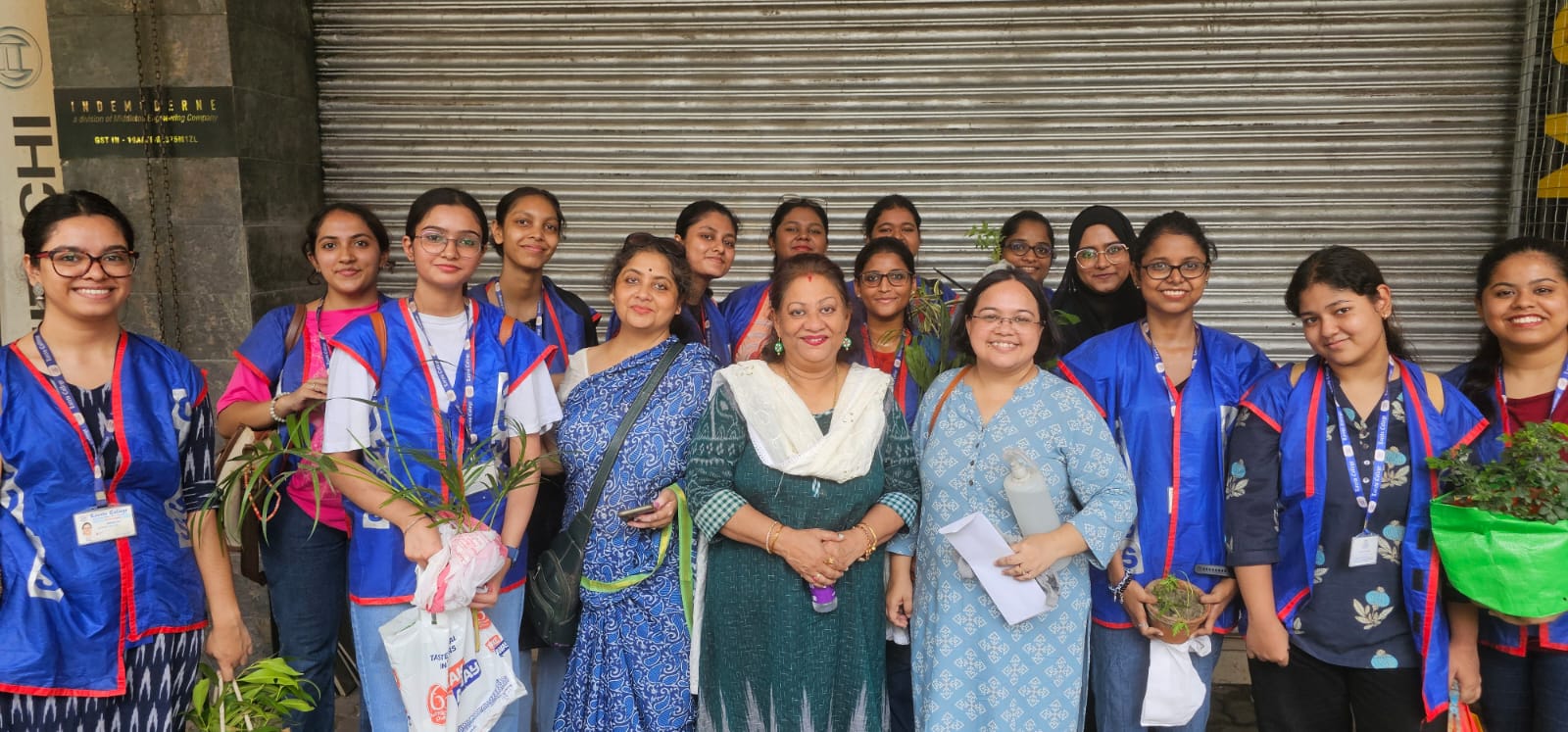 The National Service Scheme (NSS) Unit of Loreto College, Kolkata organised a sapling planting drive under the aegis of “Prakriti Sanrakshan Abhiyaan” on July 9, 2024. A team of NSS volunteers planted around 35 saplings along Park Street and Allen Park with the help of the local Ward authorities. The Councillor for Ward no. 63, Smt. Susmita Bhattacharya, facilitated the drive and guided the team throughout.