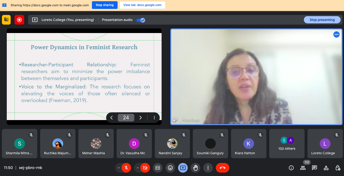 On September 21, 2024, the Department of Political Science at Loreto College, Kolkata organised a talk titled Applying Feminist Methodologies to Research in Education, Gender, and Sustainable Development. The talk served as a precursor to a research project focusing on Women’s Colleges in India as Catalysts for Sustainable Development and Gender Equity, jointly being conducted by Loreto College and Asia in Global Affairs. The event brought together students and faculty from Jyoti Nivas College, Bengaluru; Nirmala College, Ranchi; and Patna Women’s College to explore the vital intersections of feminist research, education, and sustainability.