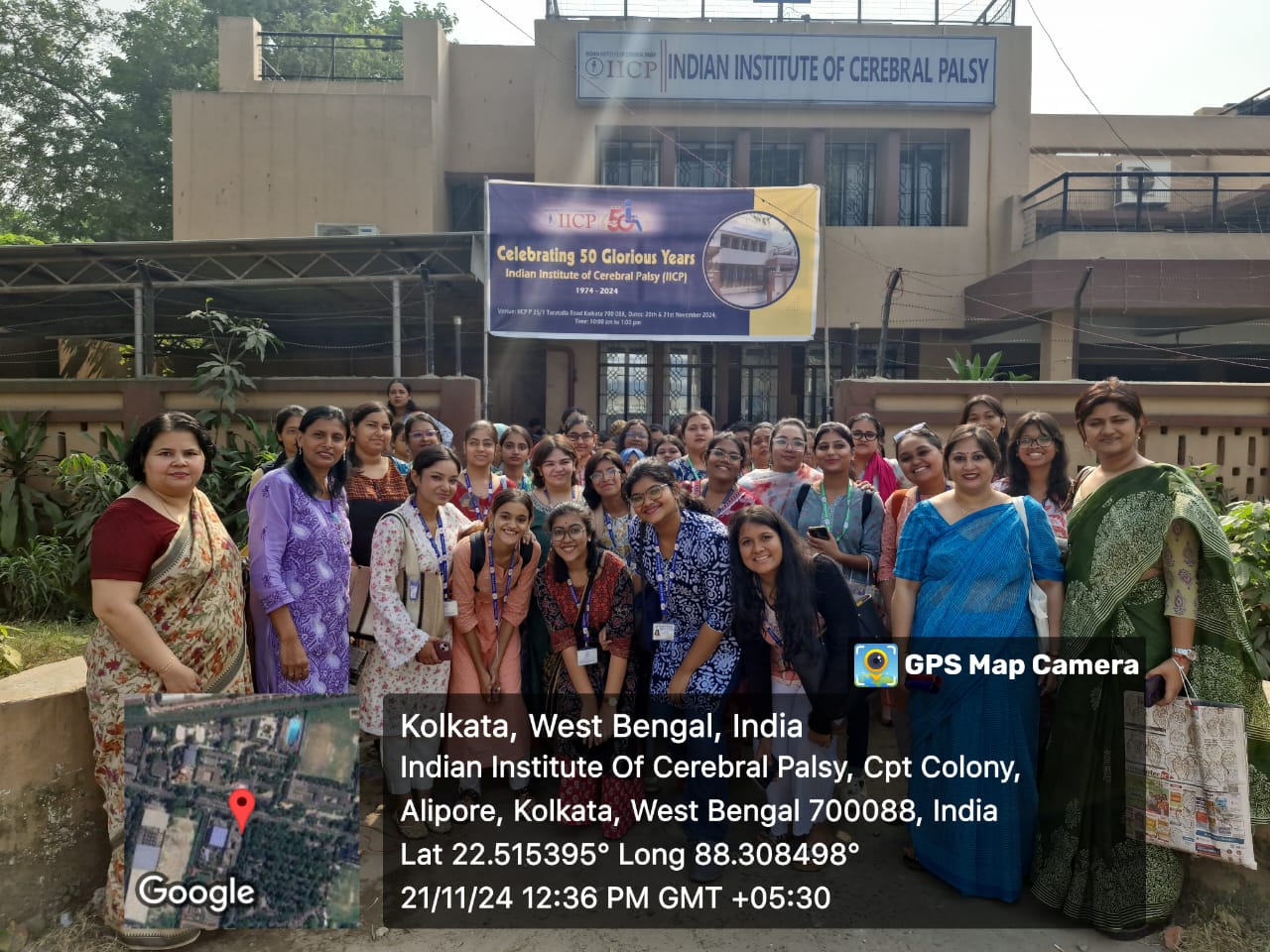 On November 21, 2024, students of the Department of Education and Semester-I students of the Department of B.Ed. at Loreto College, Kolkata visited the Indian Institute of Cerebral Palsy (IICP), Taratala in celebration of its 50th anniversary. Accompanied by their teachers and the Teacher-in-Charge, Sr. Dr. A. Nirmala, the students received a warm and gracious reception from the IICP authorities, which set the tone for an enriching and insightful experience.