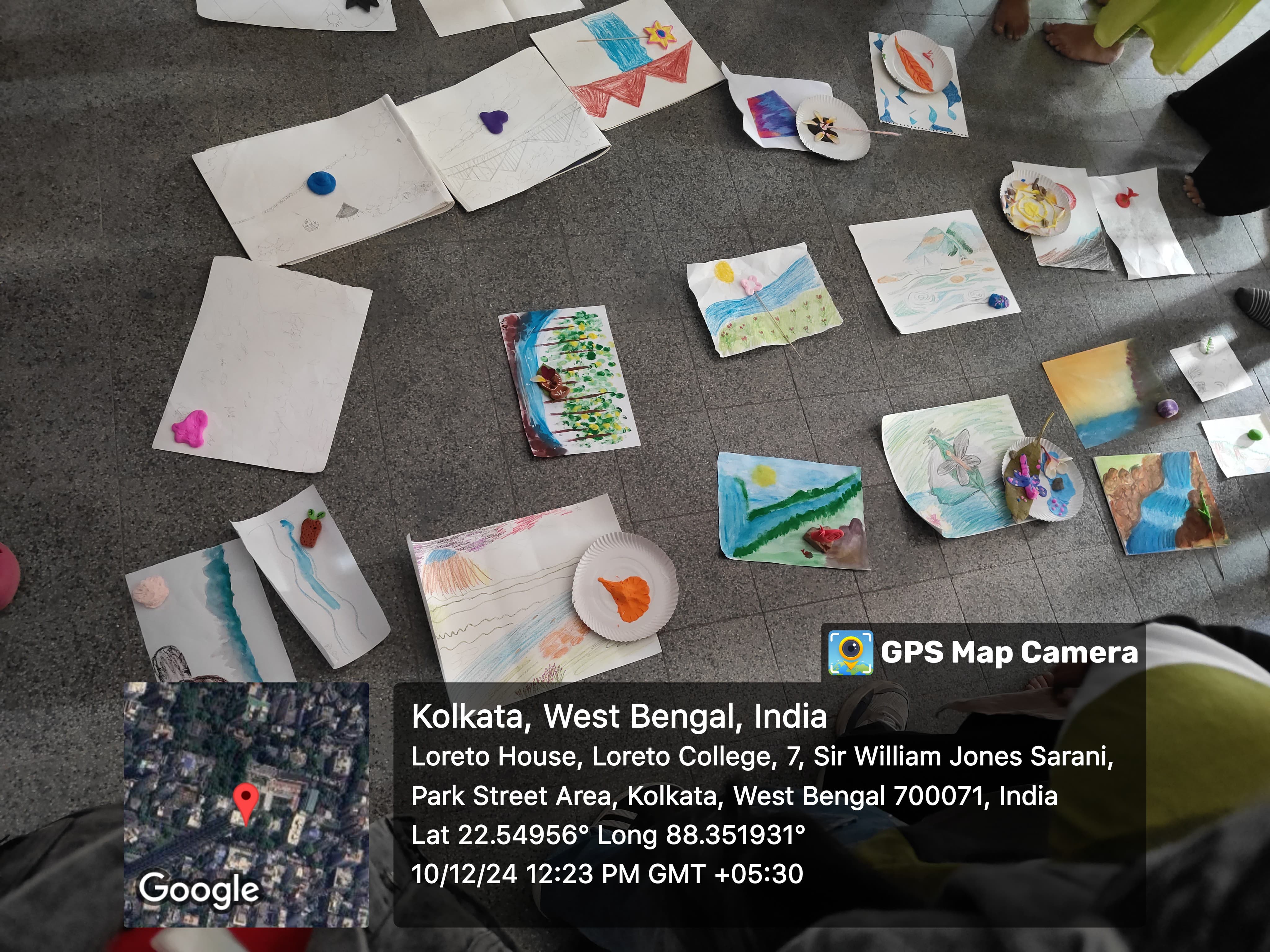 The session transitioned into guided visualisation, where participants imagined themselves in a serene, comforting space by a stream. In the warmth of this imagined environment, coupled with Dr. Banerjee's gentle instructions, students felt tension leaving their minds and bodies. A symbolic token envisioned in this safe space-a stone, a flower, a leaf-became a reminder of the calm they had cultivated. Soft modelling clay was then distributed, and students created physical representations of their tokens. Following this, participants drew or painted the spaces they had envisioned. The creative variety-oil pastels, watercolours, sketches-was as diverse as the emotions these activities evoked.