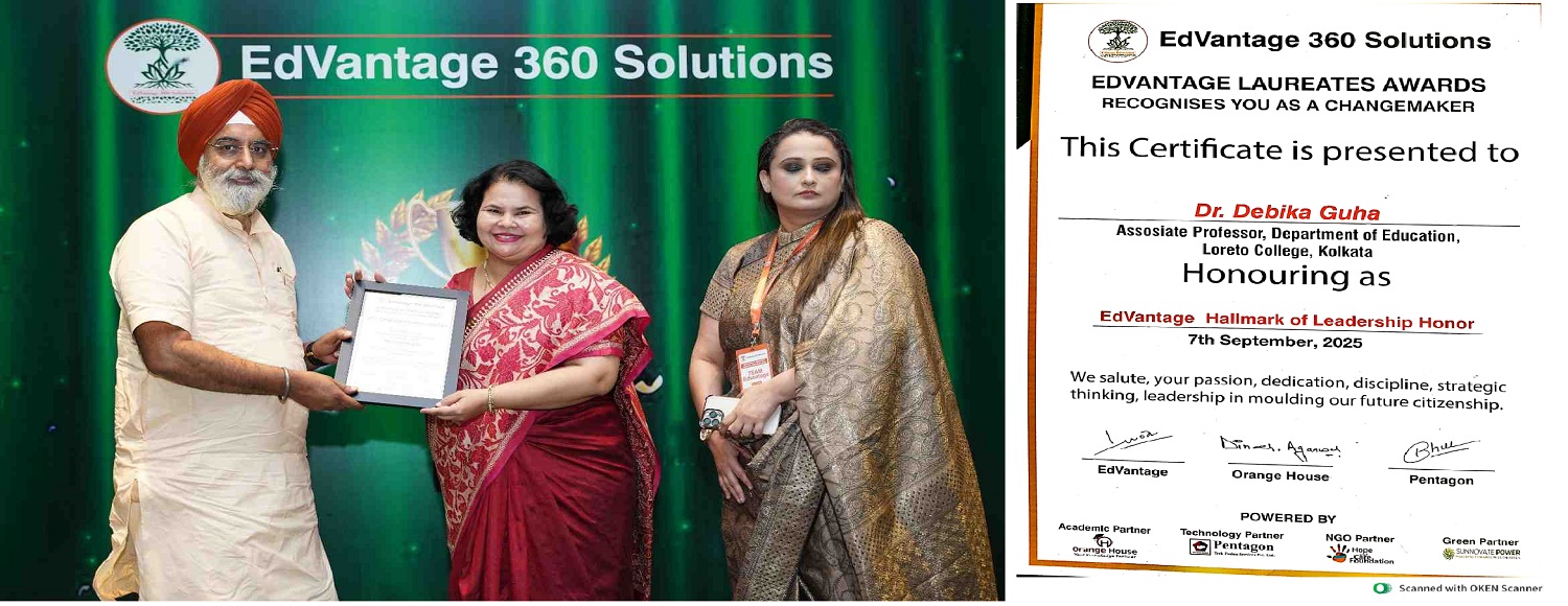 • Dr. Debika Guha received the EdVantage Hallmark of Leadership Honor Award on 7th September 2025 at New Delhi.
