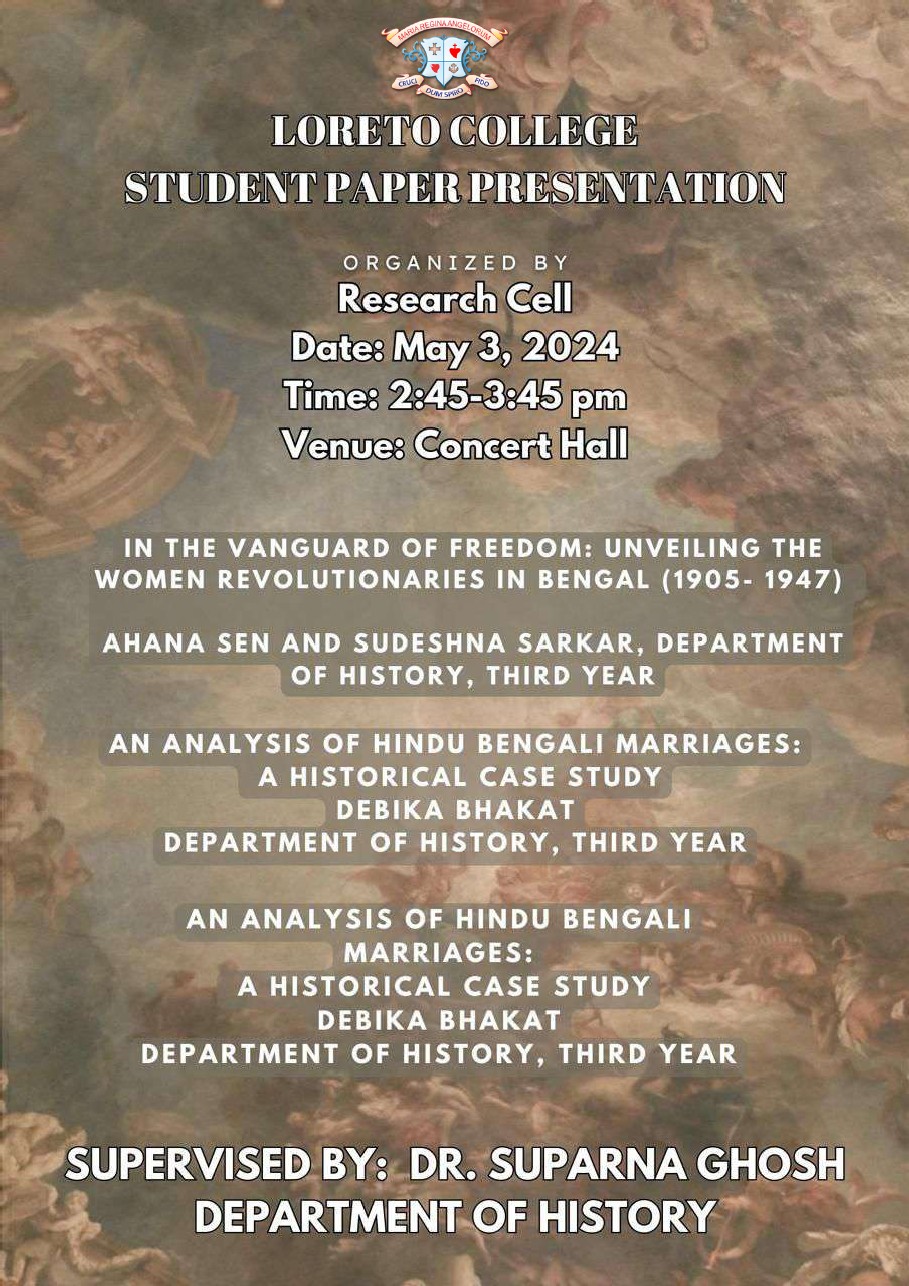 Loreto College, Calcutta was founded in 1912 by the Sisters of the Institute of the Blessed Virgin Mary (IBVM), commonly known as Loreto, a catholic religious order established by Mary Ward in 1609. The College has a rich history marked by its pioneering role in women's education in India and began as an extension of the School Department of Loreto House. A few rooms were allotted to school leavers and they were prepared privately for the university examinations at which they appeared as non-collegiate students. In 1912-1913, it became one of the first women's colleges to gain affiliation to the University of Calcutta, allowing its senior students to sit for university exams. Affiliation was first granted for Intermediate Arts and later for BA (Bachelor of Arts), ISC (Intermediate Science). Additionally, Loreto College was also affiliated for a Licentiate in Teaching (LT) in 1913, further expanding its academic offerings. The college was unique in being allowed to combine its Intermediate Arts and LT classes, a distinction supported by university professors. This was a significant achievement, as it provided young women access to higher education in subjects like biology, sciences, and Indian languages, which were typically reserved for their male counterparts.