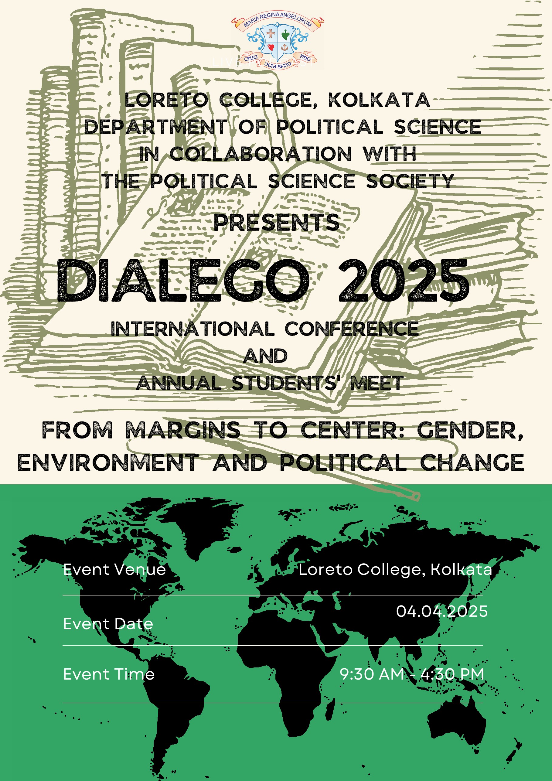 Loreto College, Kolkata, was established in 1912 by the Religious of the Institute of the Blessed Virgin Mary (I.B.V.M.). The order was founded by MARY WARD (1585-1645), a dynamic English Catholic lady, in an age when Catholics were persecuted in England. Europe was torn by religious dissension and women's rights were generally ignored. A determined visionary, she managed, with the help of some devoted companions, to set up schools for young women.