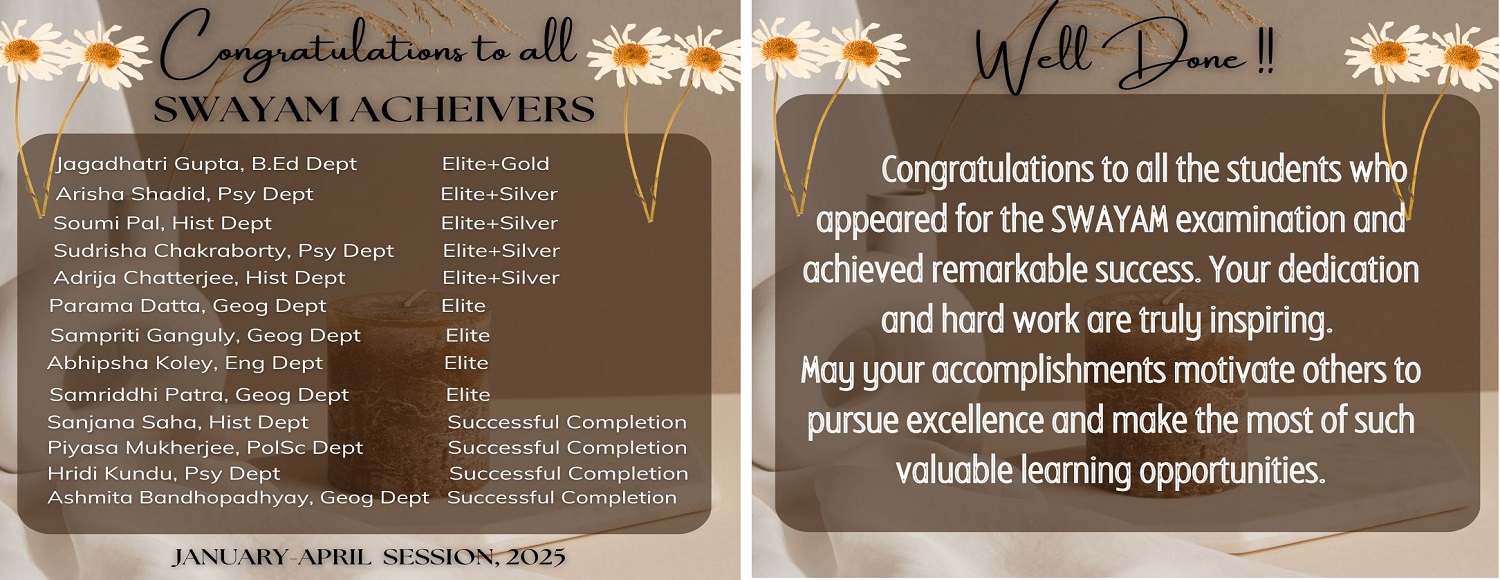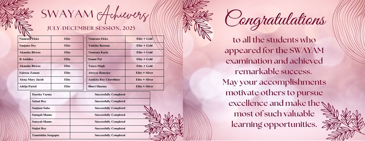 • Congratulations to all the students who appeared for the SWAYAM examination and achieved remarkable success