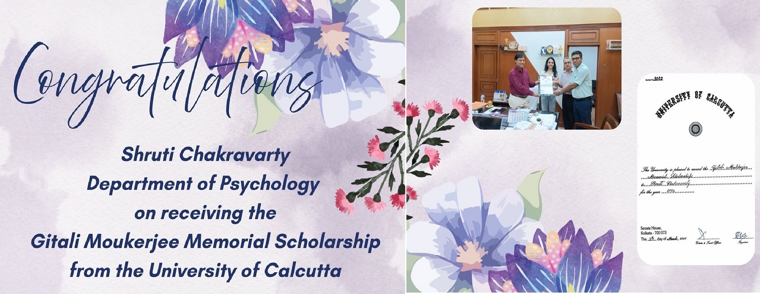 • Congratulations Shruti Chakravarty Dept. of Psychology on receiving the Gitali Moukerjee Scholarship from the Univeristy of Calcutta