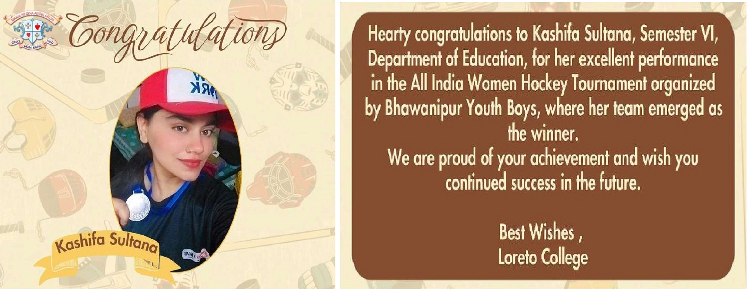 • Congratulations Kashifa Sultana Semester-VI Dept. of Education for her excellent performance in the All India Women Hockey Tournament
